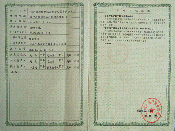 錦州冠達(dá)鍋爐(集團(tuán))容器制造安裝有限公司
