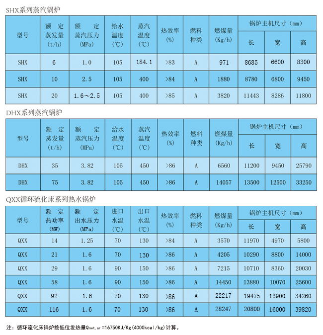 我公司生產的循環(huán)流化床鍋爐系列產品有6t/h、10t/h、20t/h、35t/h、75t/h、120t/h、240t/h蒸汽鍋爐、7.0MW、14MW、21MW、29MW、46MW、58MW、92MW、116MW熱水鍋爐。我公司的循環(huán)流化床產品是我公司和中國科學院熱能物理研究所、哈爾濱工業(yè)大學聯(lián)合開發(fā)的具有國內先進水平的新產品。循環(huán)流化床鍋爐具有煤種適應性廣、燃燒效率高、負荷調節(jié)范圍寬、可爐內脫硫、脫硝、NOx排放量低、環(huán)境保護好、灰渣可綜合利用等特點??蓮V泛應用于熱電聯(lián)產和集中供熱事業(yè)。